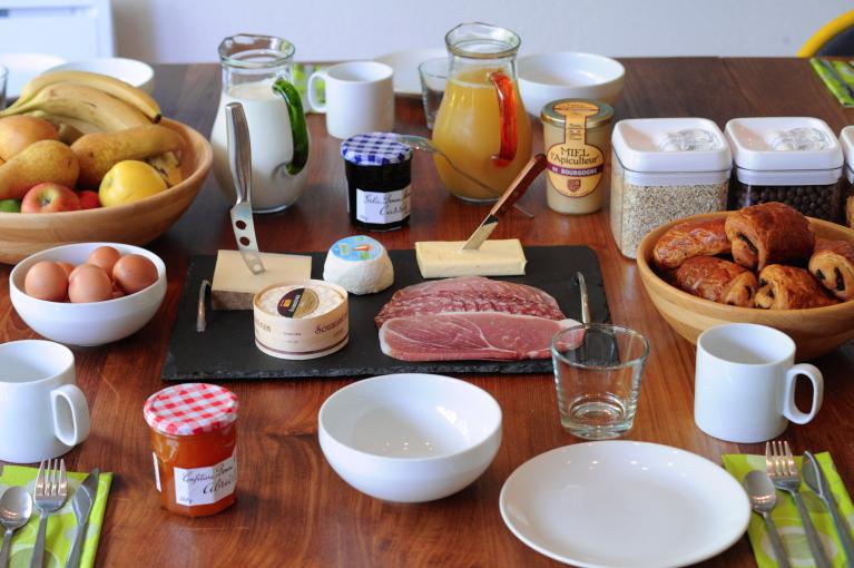 * Petits Déjeuners inclus - Café Nespresso, Thé, Lait Chocolaté, Jus de Fruits frais, Croissant et pain chauds, Confiture maison, Miel du Morvan, Oeufs de la ferme, Fromages de Région, Charcuterie de Pays, Céréales...
